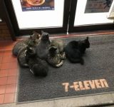 【悲報】セブンイレブンの店前に猫