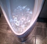 彡(゚)(゚)「お、小便器に氷が敷き詰められてるやんけ!」